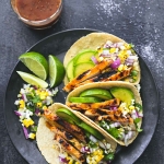 - Cook chicken with some marinade. Slice for fajitas, tacos, burritos, etc.