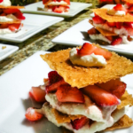 8. Place 1 phyllo piece on each of 5 dessert plates; top each with 1 1/2 tablespoons ricotta mixture and about 2 tablespoons strawberry mixture.