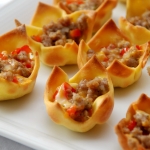 - Place cooked wontons on cookie sheet. Fill with sausage mixture.